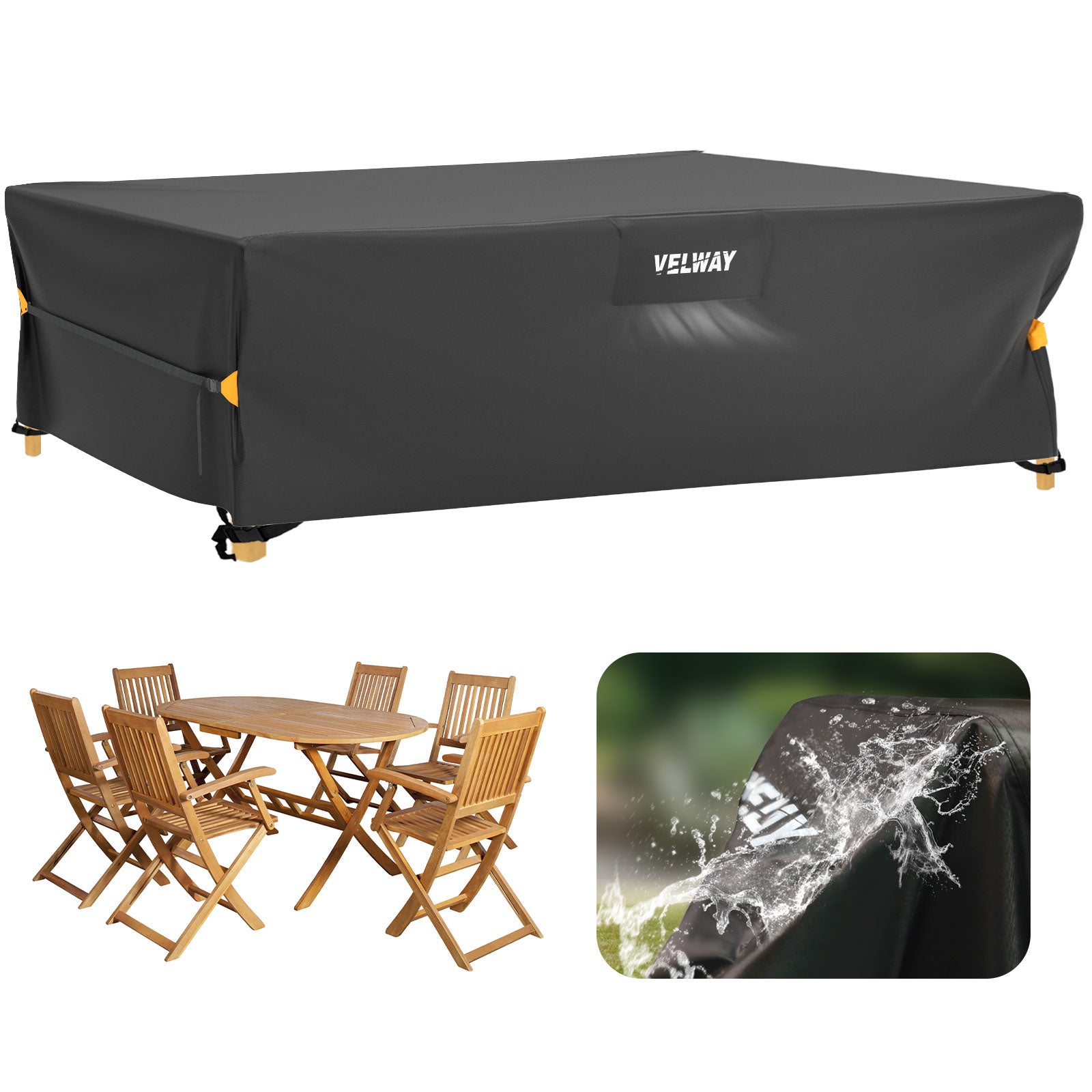 - Advanced material for excellent protection: Our Velway garden furniture cover is made of Oxford fabric with a silver coated interior to effectively protect your furniture from sunlight, rain and dust. For complete protection, we have reinforced the inner seams with waterproof tape.